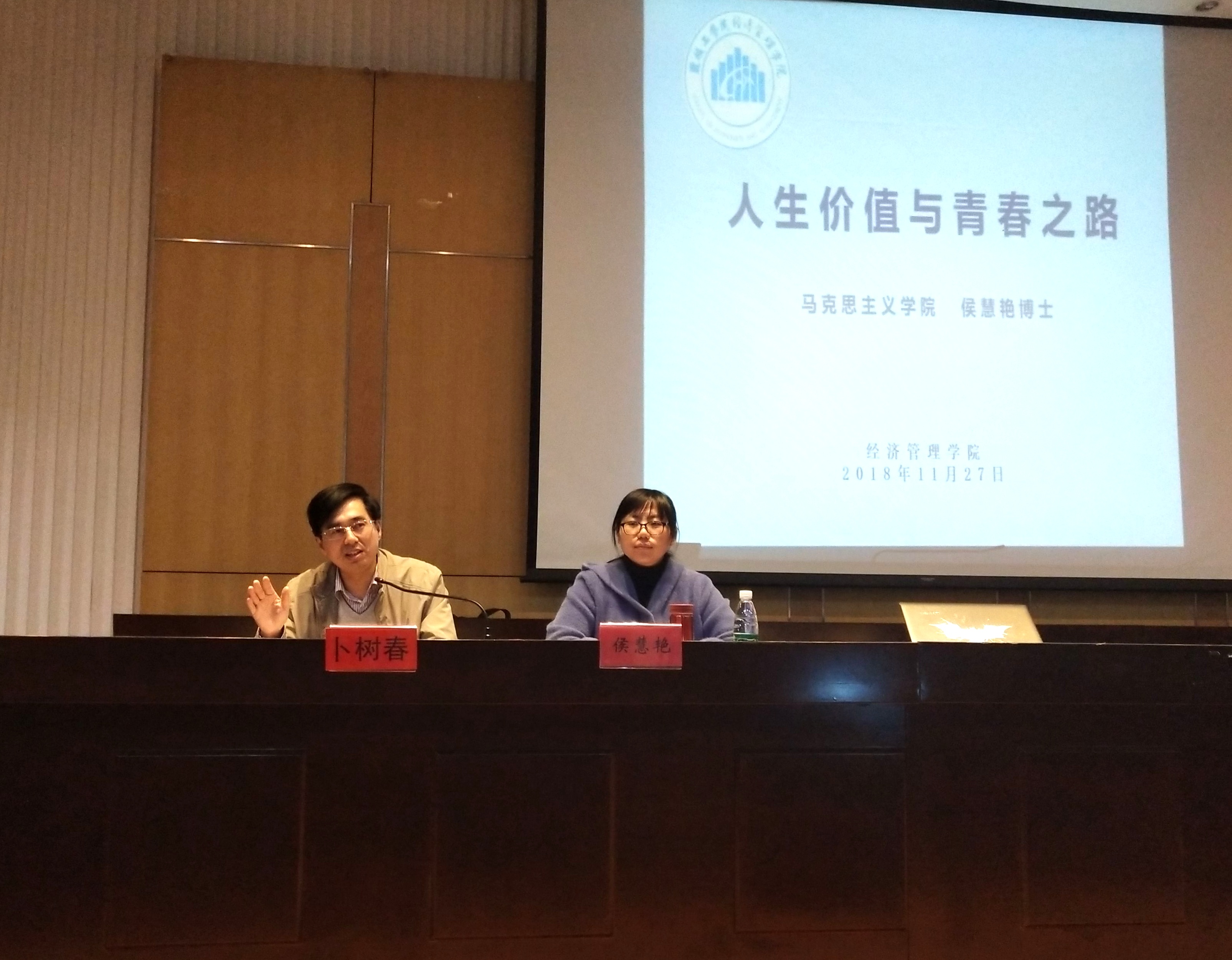 11月27日晚,williamhill三个员工党支部在北校区图书馆三楼报告厅集中上党课,马克思主义公司侯慧艳博士应邀作“人生价值与青春之路”主题党课。公司党委书记卜树春主持,院团委、三个员工党支部负责人出席,员工党员、新生员工干部300余人参加。