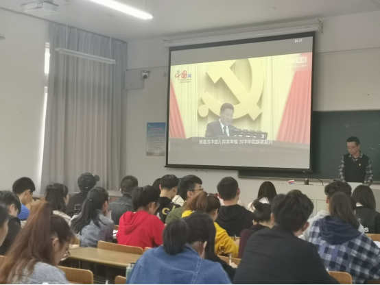 最后,所有师生党员共同认真观看了党发展历程的电教片。