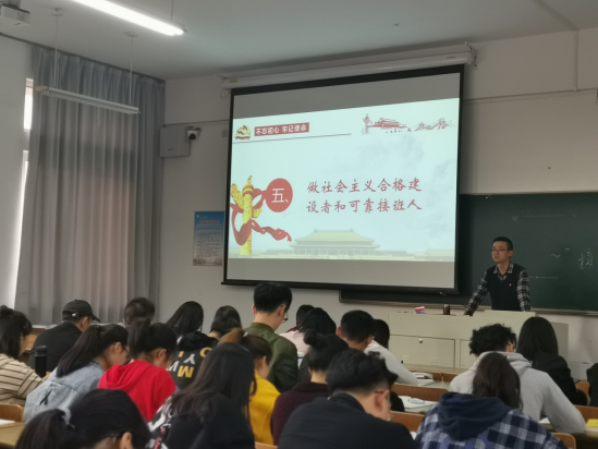 会上,陈广正紧密结合了“不忘初心,牢记使命”教育活动和习近平新时代中国特色社会主义思想,从党的重要思想、重要理论、重要实践、新时代老员工如何进行德智体美劳全面发展等方面,深入浅出的为员工讲述党发展的艰辛历程,从自身角度出发,举例说明了新时代发展的巨大变化,要求同学们要筑梦爱国、担当奋斗,用实际行动来报效伟大祖国,以:“作为一名青年党员,我们该怎么做”这一问题结束本场汇报,引发同学们的深思。