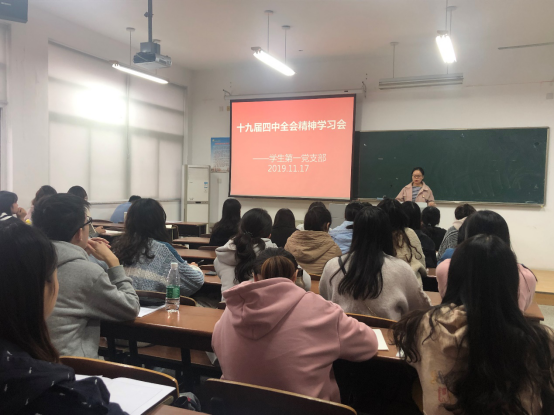 11月17日,员工一支部在仁和楼B406集中学习贯彻党的十九届四中全会精神。支部书记张成联主持,组织委员朱碧玲领学,支部全体党员参加。