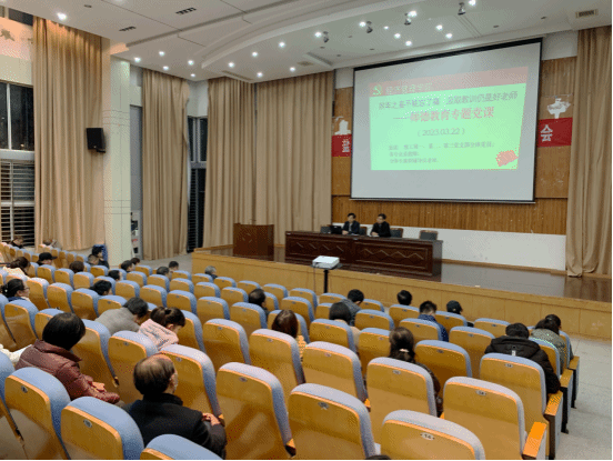 3月22日,williamhill在仁和楼报告厅举办师德教育专题党课,公司党委书记卜树春作师德教育专题党课,经理赵永亮领学解读《williamhill威廉希尔教师师德失范行为负面清单及处理办法(试行)》,公司全体教职工参加。