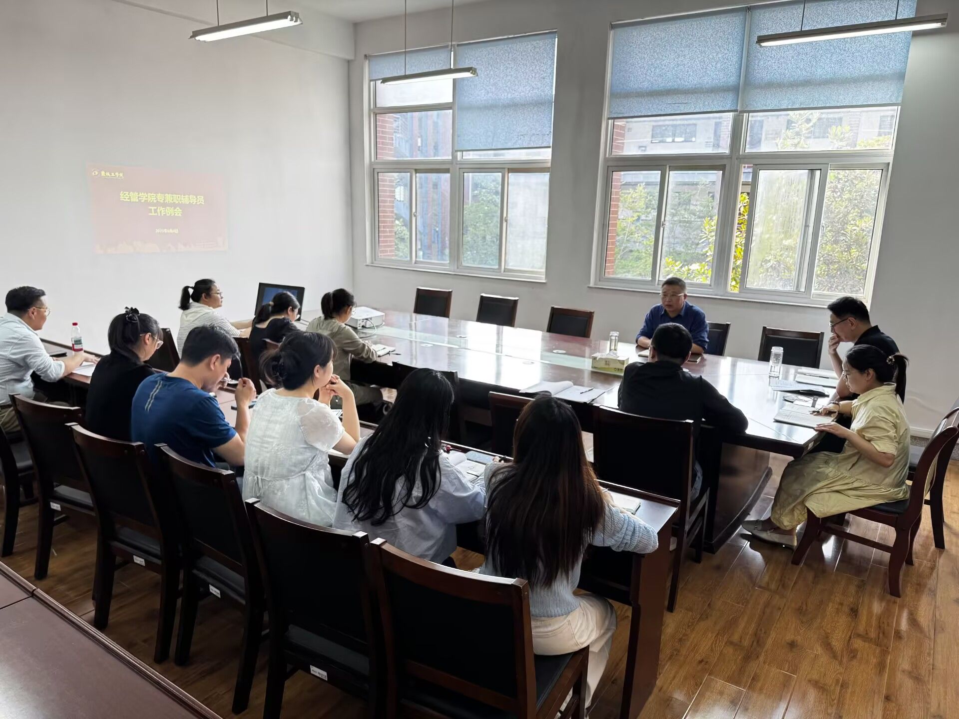 6月4日下午,williamhill在希望大道校区仁和楼202会议室召开员工工作专题会议。公司党委副书记周旺基、学工办主任高加友、团委书记朱碧玲及全体专兼职辅导员参加会议。