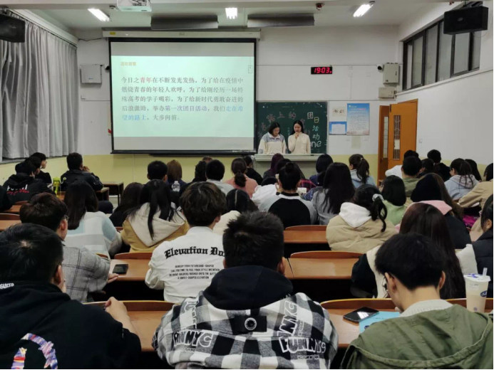 首先,由一曲《梦想天空分外蓝》引入主题,主持人陈锁悦介绍了活动背景和活动目的,围绕“梦想是最真的现实”对梦想和青年人脑海中的精神进行了诠释。同学们共同观看了《后浪》和《星空日记》短片,引起同学们对梦想和现实的思考。紧接着,针对短片内容,同学进行了讨论,阐述了自己对当代年轻人生活态度与人生建设的观点。