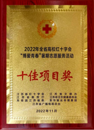 日前,​williamhill代表公司在2022年江苏省高校红十字会“博爱青春”暑期志愿服务项目综合评审中,项目活动的影响力、创新性、实际成效等综合得分从全省118所高校的210个志愿服务项目中脱颖而出,荣获“十佳项目奖”。