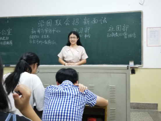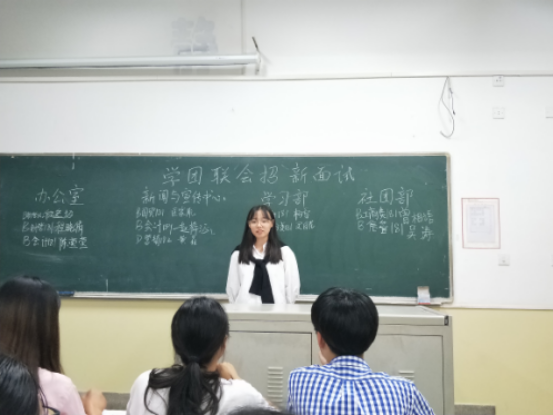 在自我介绍环节,新生们尽量把自己的优势展现出来,有的外向开朗,舞蹈、歌曲信手拈来,都毫不怯场;有的沉稳内敛,担任过多次班干,非常优秀。精彩的自我介绍之后,部长和副部们也都尽可能地全方面提问,努力挖掘,希望新生们能展现出最好的自己,从而找到真正适合自己的部门。