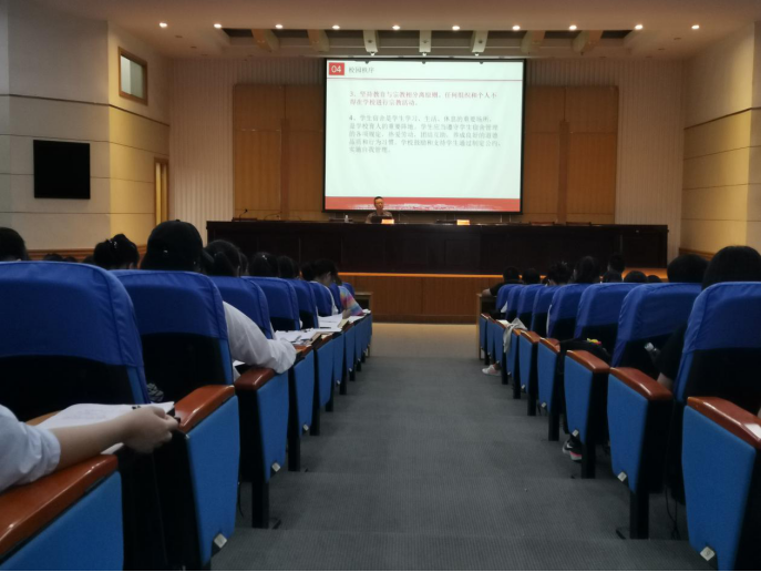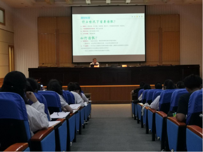 9月11日上午,williamhill在北校区图书馆报告厅开展“大学第一课”之一日常规教育活动,公司党委副书记周旺基和公司学工办主任陈广正主讲,新生辅导员和全体大一新生参加。