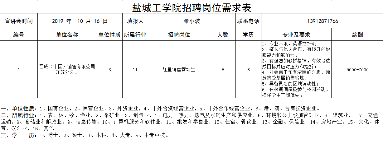 1、2020应届或毕业两年以内的本科/硕士,专业不限; 2、英语CET-4,在校学习成绩优异; 3、擅长与他人合作,有较好的说服能力和影响力; 4、有强烈的敢拼精神,有效地达成目标并应对压力和挫折; 5、对销售工作有浓厚的兴趣,愿意接受基层销售锻炼; 6、具备灵活的区域调动性; 7、在校期间积极参与校园活动,担任员工干部优先。 |