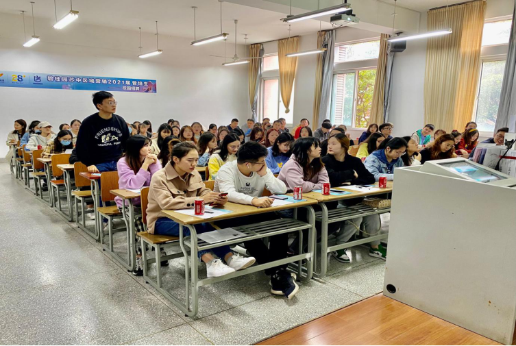 为了更好地解决大学毕业生就业困难的问题,缓解当今的大学毕业生就业压力,10月21日下午,公司在南校区博学楼A208举办碧桂园苏中区域营销2021届管培生校园招聘会,此次招聘会由碧桂园集团品牌营销中心的工作人员及学长学姐主讲,公司50多名毕业生参与。