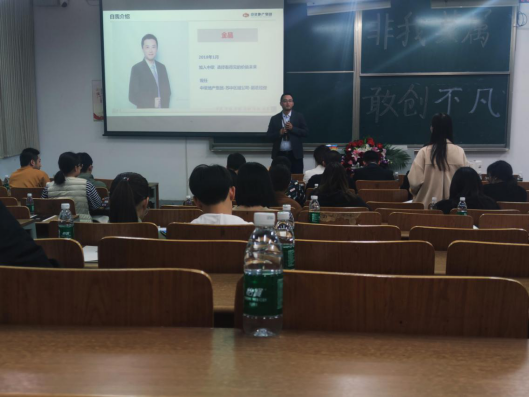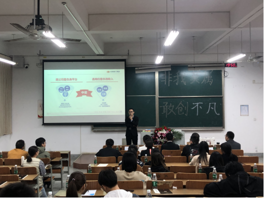 会议伊始,公司往届毕业生赵琪主持了有奖问答环节并组织同学们观看了中梁控股集团的介绍视频。接着,中梁控股的高级经理姜斯瑶进行了中梁控股企业的宣讲,他和同学们讨论了“我们想要什么样的人生”、“如何听一个宣讲会”,并介绍了中梁控股企业的发展现状以及大家最关心的薪资情况。姜经理提出:“我们刚开始工作的两年最重要的是要积累经验,他们公司员工的关系没有等级之分,就像朋友一样,这就与他们的组织文化有关。”接着,姜经理介绍了面试流程,让同学们做好准备。最后,中梁控股集团邀请营销管培生汤亚东何苏东区域副总经理金晶进行了经验分享,他们结合自己的大学四年专业选择给同学们提了建议。