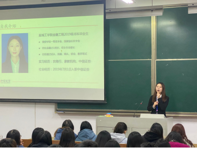 宣讲会分为介绍、答疑何分享几个环节。中信证券的工作人员首先以PPT展示的形式向大家介绍了企业文化、新员工培养体系以及公司的福利政策。然后,工作人员一一解答了现场同学提出的各类问题。最后,现在在中信任职的公司毕业生代表上台分享了一些他们的工作经验和建议。