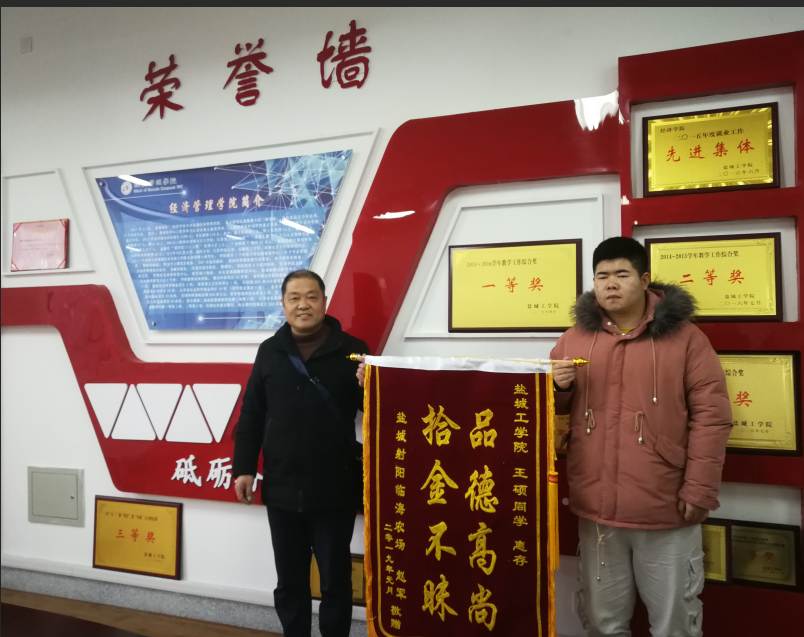 据了解,王硕是金融162班员工,江苏泗阳人,曾任院员工会组织部干事,在班级也乐于助人,只要是能帮得上忙的,他都愿意搭把手,为人憨厚老实,积极参与班级集体活动。对于赵先生的感谢,他感到很惊讶。他说:“作为一名老员工,这是我应该做的,也算是为文明校园的创建、中国梦的实现贡献青春力量吧!”