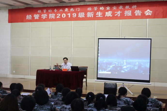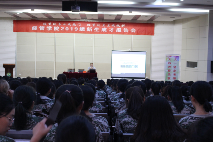 9月11日,williamhill在北校区图书馆报告厅召开2019级新生成才报告会,公司党委书记卜树春、经理助理、MPAcc中心主任李争光出席,公司学工办主任陈广正、公司团委副书记张成联、新生辅导员和全体2019级新生参加。公司党委副书记周旺基主持。