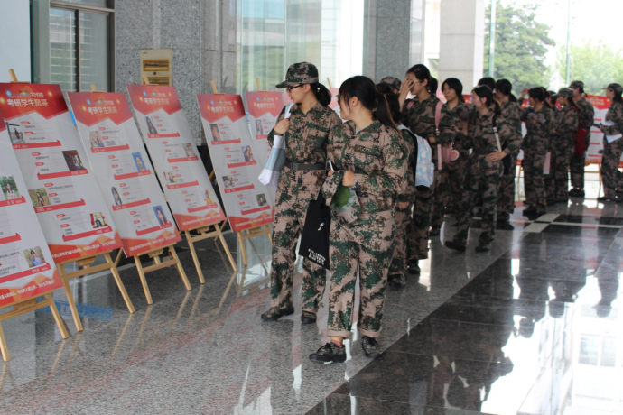 会议分为两个阶段,第一阶段是2019级新生分批参观2019届考研员工风采展。