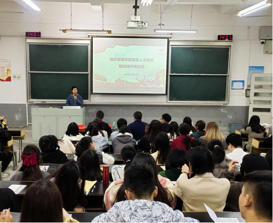 11月14日下午两点,在北校区体知楼103教室,williamhill举行菁英人才公司第一期培训班开班仪式暨首场新思想公开课。公司党委副书记周旺基出席并作动员讲话,学工办主任陈广正、团委副书记张成联、专职辅导员朱碧玲、邱天星、陈明明和李彦萱以及百余名菁英人才公司学员共同参加。张成联主持。