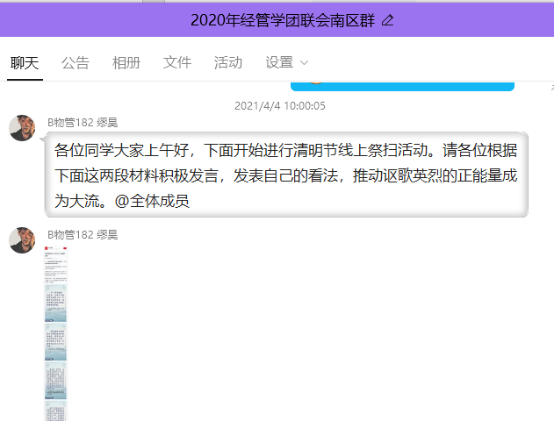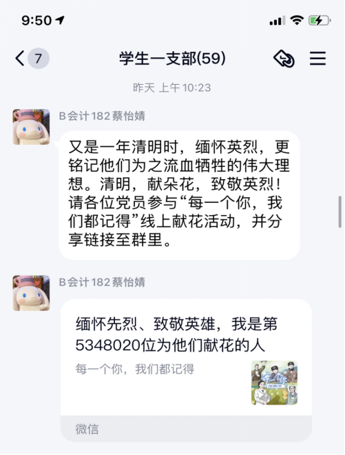 4月4日-5日,公司青年团员响应团中央号召,在微博晒出在各地人民英雄纪念碑、英烈纪念馆等参观的照片,一起缅怀逝者、纪念英烈,并参与“缅怀先烈、致敬英雄”献花活动。同时在“与总书记一起缅怀英烈”群内打卡时,积极发言,纷纷表示要以革命先烈为榜样,从中汲取精神营养,在今后的学习工作中,不忘初心,努力奋进,弘爱国精神,立报国之志,谱写未来新篇章!B会计182班蔡怡婧感慨道:“清明看山河,心香作然诺。先烈筑国土,吾辈当自强。”