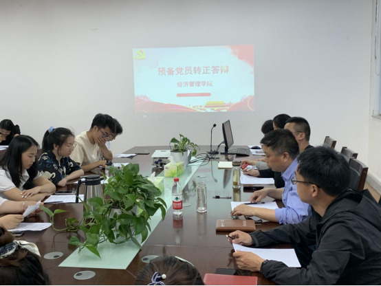答辩会分个人汇报和现场问答两个环节。29名预备党员就预备期一年来的思想、工作、学习等情况逐一向党组织进行汇报,对存在问题和努力方向进行自我剖析,重点汇报了考研、就业的过程及人生规划。评委就党的基本理论知识、预备期内的个人表现和人生规划等进行提问,并根据29名预备党员的预备期表现及答辩情况进行认真评议,以无记名投票方式进行表决。