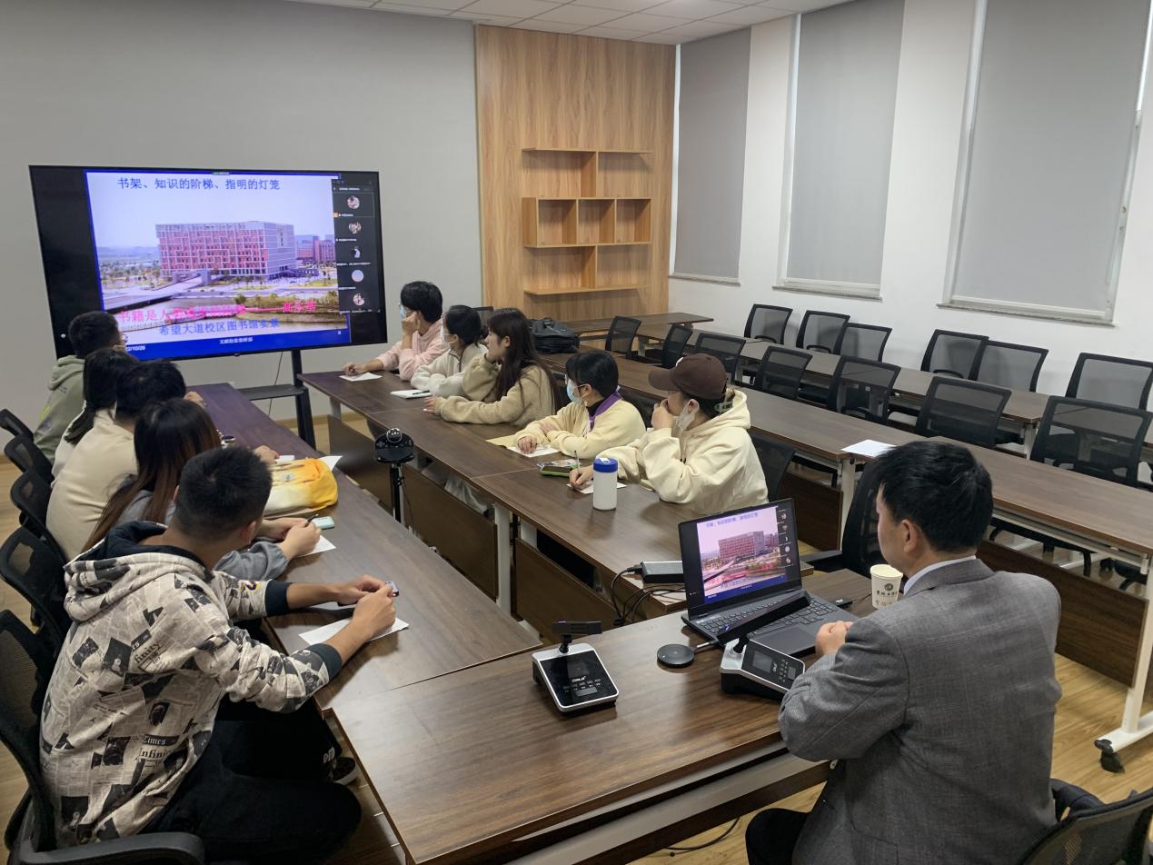 秦殿启介绍公司图书馆历史、馆藏资源、馆舍分布、图书馆开放时间、使用导航、文明守则和借阅规则等。讲解书籍检索方法、图书借阅流程、“超星移动图书馆”手机客户端。他强调说,安全信息素养与健康信息素养不可或缺,同学们应当学会辨别真伪,在众多的资源中,养成良好的阅读素养。他引用博尔赫斯的名句:“我心里一直都在暗暗设想,天堂应该是图书馆的模样”,鼓励同学们爱护书籍,做一个有思想的读者。