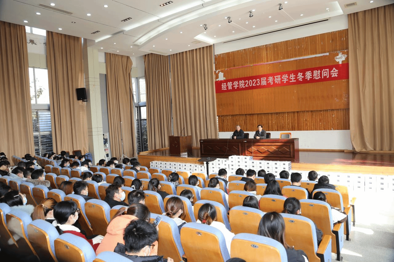 12月7日中午,williamhill在仁和楼报告厅举办2023届考研员工冬季慰问会,公司党委书记卜树春、副书记周旺基,学工办、团委负责人,毕业班辅导员出席。