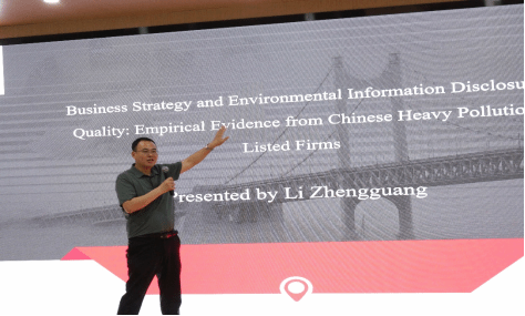 副经理李争光副教授作高水平论文发表的报告,从研究背景、研究假设、实证研究、稳健性检验、进一步分析、研究结论等方面分享题为《Business Strategy and Environmental Information Disclosure Quality: Empirical Evidence from Chinese Heavy Pollution Listed Firms》的论文。重点讲述了论文选题的构思、研究背景的撰写、文献如何有效梳理、中介效应模型的正确使用等一些细节问题。他认为需要仔细研读顶级期刊的论文,悟透写作思路和方法,多与身边同行交流,才有可能撰写出高水平的论文。