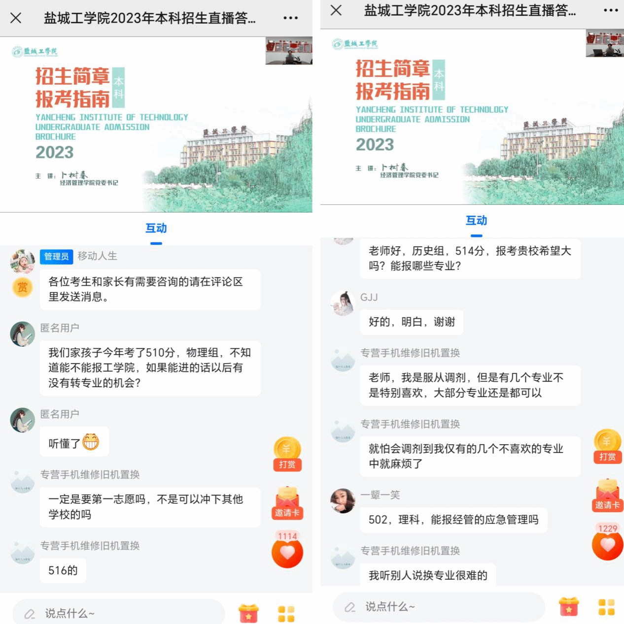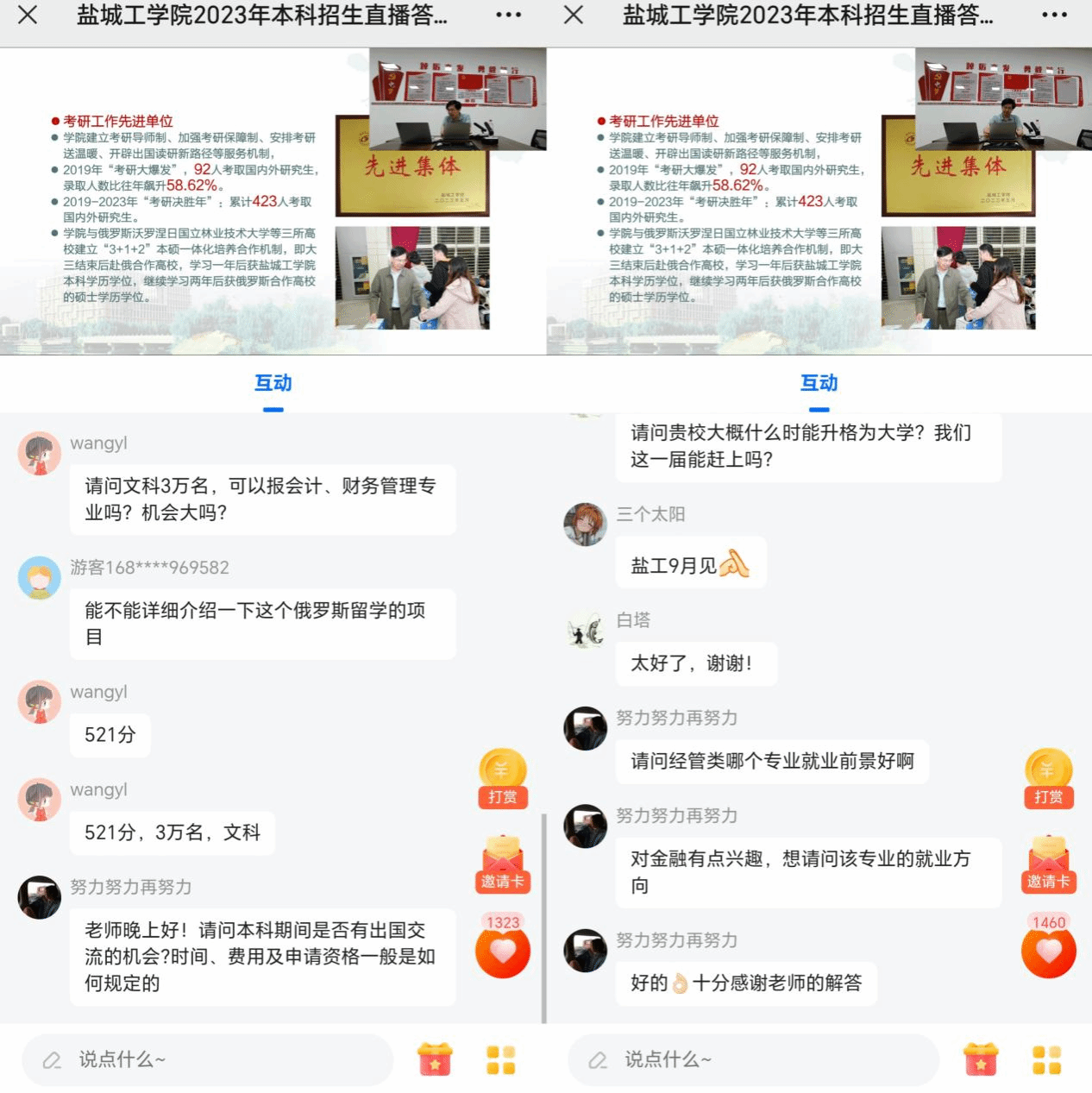 这次线上咨询会是williamhill认真策划、充分准备的一场活动,公司提前印制了线上咨询会的宣传卡片,确定了线上咨询时间、方式等,要求全院各招生宣传组的师生在南通地区面上招生咨询、各县区近50所生源高中进校咨询时,广泛发放线上咨询宣传卡片。考虑到家长们白天可能在上班忙碌,所以将线上咨询时间放在晚上进行,采用视频直播形式,更加方便考生及家长随时随地在线参加。线上咨询是对线下招生咨询的重要补充,以创新方式为考生及家长提供更加个性化专业化的咨询服务,提升了招生宣传工作的温度、力度、广度和深度,受到南通地区广大考生及家长的欢迎,员工及家长们在评论区纷纷留言感谢老师的分析和解答,有的员工直接在评论区开心地表示“盐工9月见”。