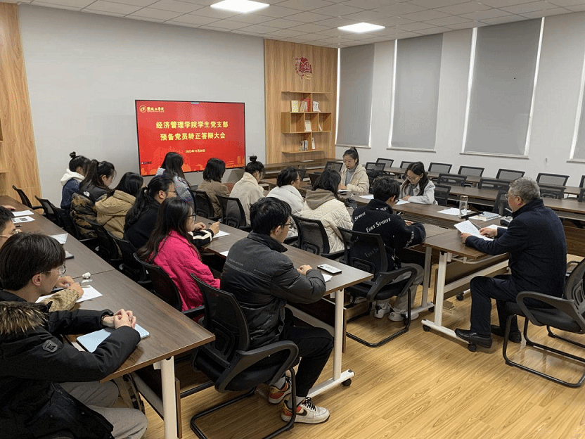 答辩会分为个人汇报、现场问答两个环节。每位预备党员就预备期内的思想、工作、学习等情况向党组织进行汇报,重点汇报个人考研就业情况、学业规划、职业规划。答辩评委就党的理论知识、实际表现、工作业绩、学业规划、职业规划等进行提问。经过答辩小组最终评议,21名预备党员通过答辩。