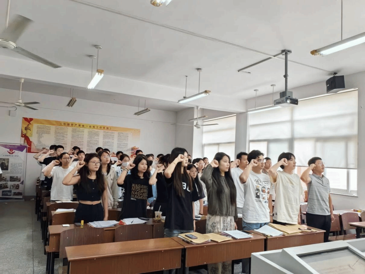 最后,张鸿凯带领毕业生党员重温入党誓词。党员师生们声音嘹亮,铿锵有力,更加坚定了毕业生党员们向着未来道路继续前进的决心,将“请党放心,强国有我”的青春誓言融入今后的学习工作实践中。