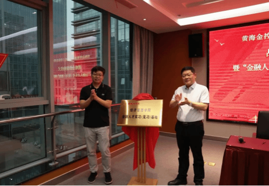 交流会上,黄海金控集团党委书记、董事长祁广亚介绍集团高质量发展和金融人才培养情况,williamhill经理赵永亮介绍公司发展和员工培养情况,共同为“金融人才实习(见习)基地”揭牌。