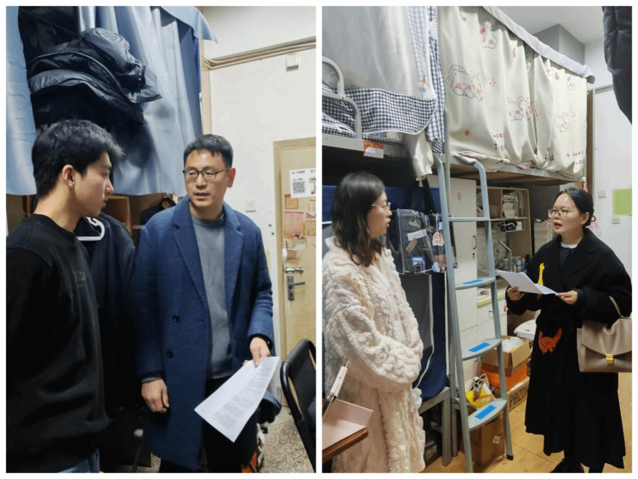 检查过程中,辅导员分别深入责任班级员工宿舍,了解员工们的学习、生活状况,重点排查员工宿舍内吸烟、使用违规电器、存放违禁物品等安全隐患,同时对宿舍矛盾、环境卫生等问题进行深入地了解和摸排。老师们与员工亲切交流,不仅认真倾听员工在新学期学习生活中的各类需求、意见和建议,还悉心提醒同学们要加强宿舍学风建设,严格遵守宿舍管理规定,时刻注意防火、防盗,做好宿舍卫生和个人卫生,共同营造安全、和谐、卫生的宿舍环境。