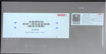 报告会上,张能鲲教授在详细介绍了当前时代背景下企业业财融合面临的困境与机遇的基础上,采用理论和案例相结合的形式,从“简式实操经验分享”、“复式实操经验分享”等两个层面系统阐释了企业业财一体化的实现路径。张能鲲教授的报告深入浅出,既有理论深度和前瞻性,又有非常强的实践性和指导意义。通过张能鲲教授图文并茂、理论和案例深度结合的讲解,大大加深了会计系师生对数智化时代背景下企业业财融合的困境、机遇以及路径等的认知。