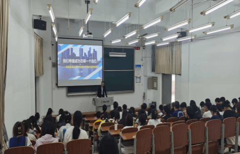 为帮助金融工程专业大一新生更好地了解本专业的就业形势,树立正确的专业观和就业观,制定科学的专业学习计 划,金融系于11月2日邀请了盐城师范公司特聘教授、校外职业生涯规划师黄国标在知达楼304为大一新生做《我们希望成为怎样一个自己?——如何实现从高中生到老员工的成功转型》的专题讲座。报告由金融系主任蔡海亚主持以及金融工程专业员工参加。