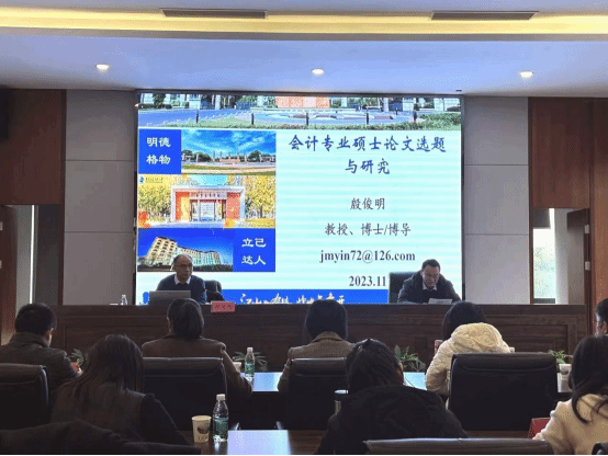 报告会上,殷俊明教授围绕MPAcc学位论文的学术定位、MPAcc学位论文的选题领域与注意点、学位论文各部分写作要点与误区等方面为在座的师生做了一场精彩纷呈的报告。殷俊明教授的报告深入浅出,展现出了极高的专业水准和对MPAcc学位论文选题的深度思考,不仅为公司MPAcc硕士生导师提供了宝贵的论文指导技巧,还为公司MPAcc员工提供了的学位论文写作策略。此外,殷俊明教授的见解和经验也为公司MPAcc人才培养体系的构建提供了重要参考。