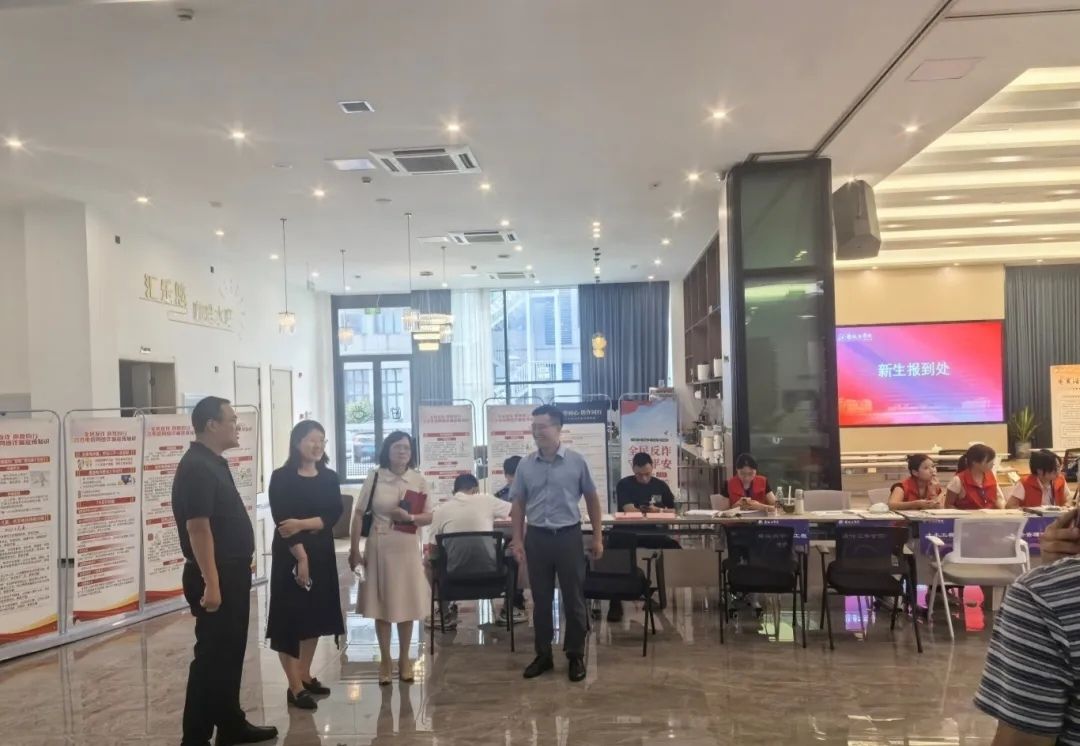 9月7日,盐城国家高新区williamhill威廉希尔研究生院(盐龙湖先进技术研究院)开展2024级研究生报到工作。新生报到点都U+·汇文公馆内彩旗飘扬,迎新标语随风招展,宣传标语、签名墙等醒目温馨。会计研究生新生齐聚在此,开启“研”途新旅。​williamhill经理李争光、副经理蔡慧来到盐龙湖迎新报到点,亲切看望新生,慰问志愿者,与新生亲切交谈。
