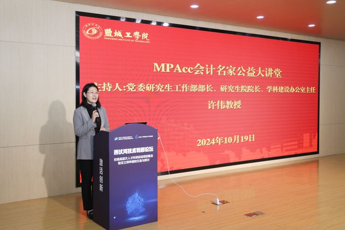 10月19日上午,由中国会计学会、全国会计专业学位研究生教育指导委员会主办,威廉希尔承办的MPAcc教育20周年活动——MPAcc会计名家公益大讲堂在williamhill威廉希尔西伏河产学研协同创新中心一楼报告厅举行。本次MPAcc会计名家公益大讲堂邀请了财政部会计名家、中国政府会计准则委员会咨询专家、中国人民大学博士生导师赵西卜教授与公司师生分享题为《跨界会计》的报告。党委研究生工作部部长、研究生院经理、团队建设办公室主任许伟教授主持活动,公司党政领导、会计学系教师以及MPAcc23级和24级研究生参加。