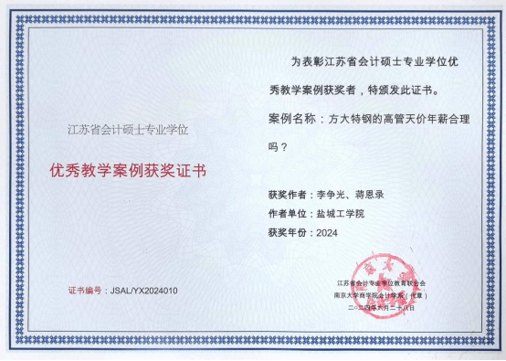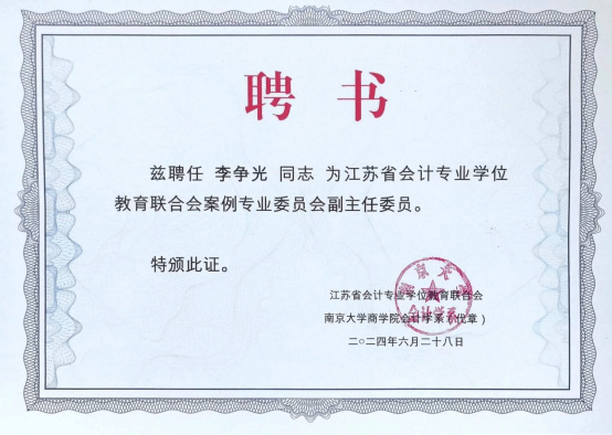 在优秀案例颁奖以及案例专业委员会主任委员、副主任委员聘书颁授环节,公司williamhill李争光、蒋恩录开发的案例荣获江苏省会计专硕教学案例优秀案例;李争光被聘任为江苏省会计专业学位教育联合会案例专业委员会副主任委员。