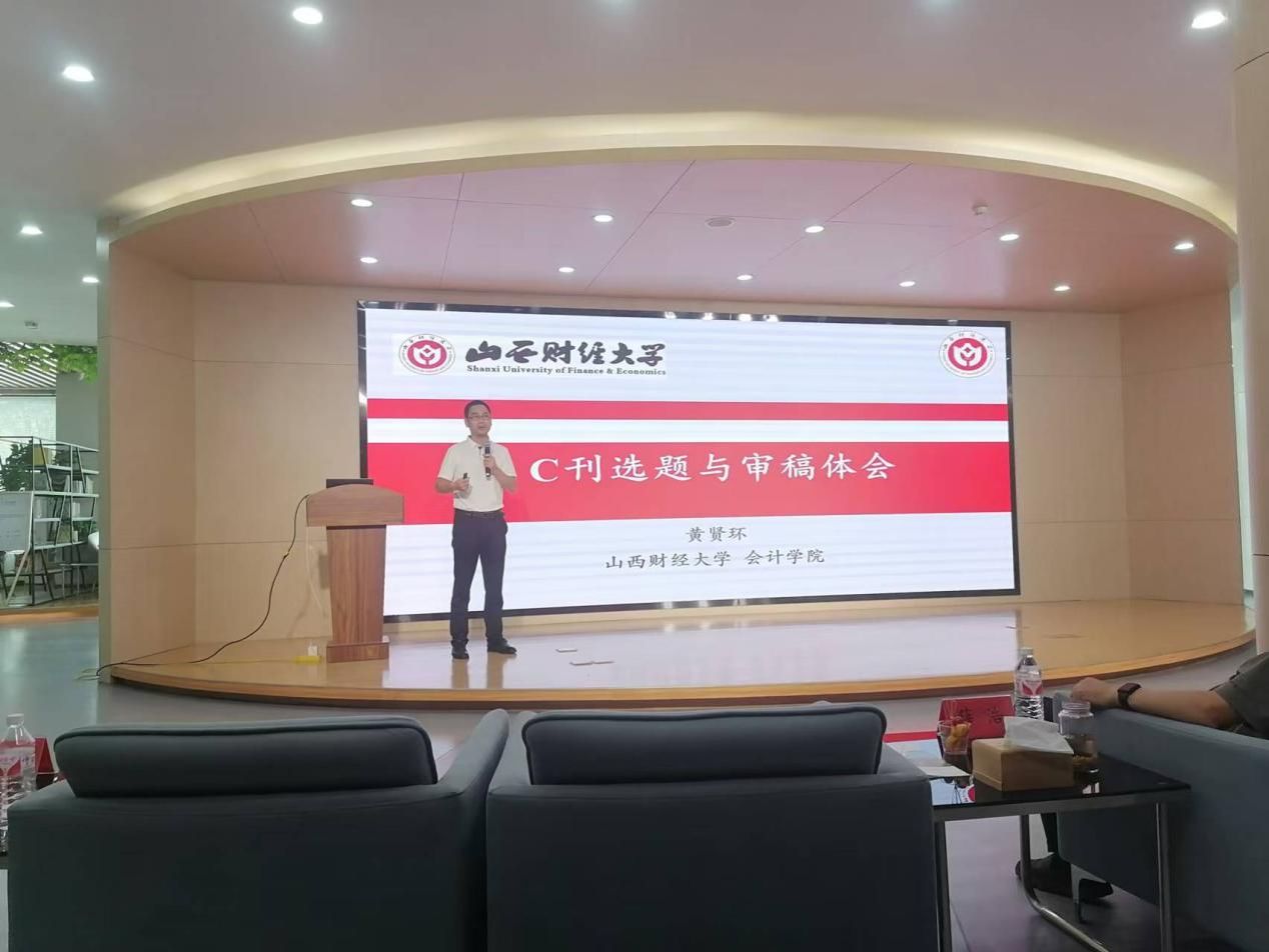 黄贤环副教授以《C刊选题与审稿体会》为题,从学术论文审稿体会以及好的论文选题从哪来等两个方面作了精彩的报告。黄贤环副教授分享了自己作为《山西财经大学学报》责任编辑的审稿体会。他从审稿编辑的视角详细介绍了论文选题、各个部分写作、论文格式等方面的注意事项以及审稿专家关注的核心问题,深入分享了关于如何寻找好的论文选题等经验体会。