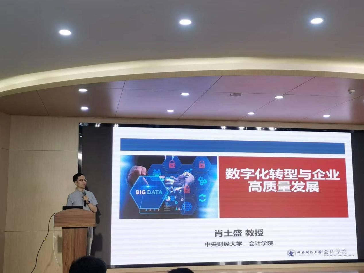 在主题报告环节,肖土盛教授作了题为《数字化转型与企业高质量发展》的报告。肖土盛围绕《数字化转型与企业创新活动》《数字化转型与企业分工》《数字化转型与企业收入分配》等三个主题细致阐述了研究动机、研究内容,分享了论文写作和投稿的心得体会。他勉励年轻老师要积极学习新方法新技术,立足中国问题、采用国际范式,做顶天立地的研究。