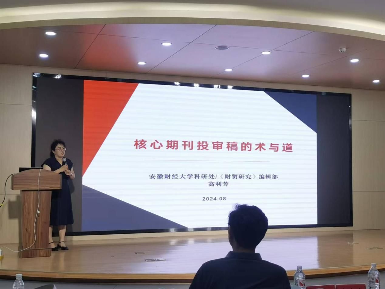 高利芳教授的报告主题是《核心期刊投审稿的术与道》。结合自身担任《财贸研究》副主编的工作经历,高利芳教授从学术和技术两个层面深入分享了自身对于投稿问题的认知。她认为,学者在论文投稿过程中一方面要“知己知彼”,了解期刊的风格和相关要求,另一方面要对论文各个部分进行认真修改和打磨,提升论文质量。此外,高利芳教授还就审稿关注的重要问题进行了介绍。